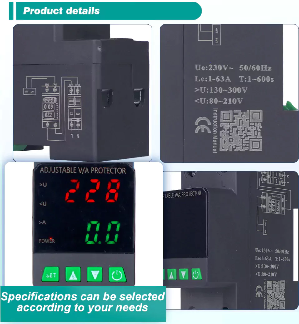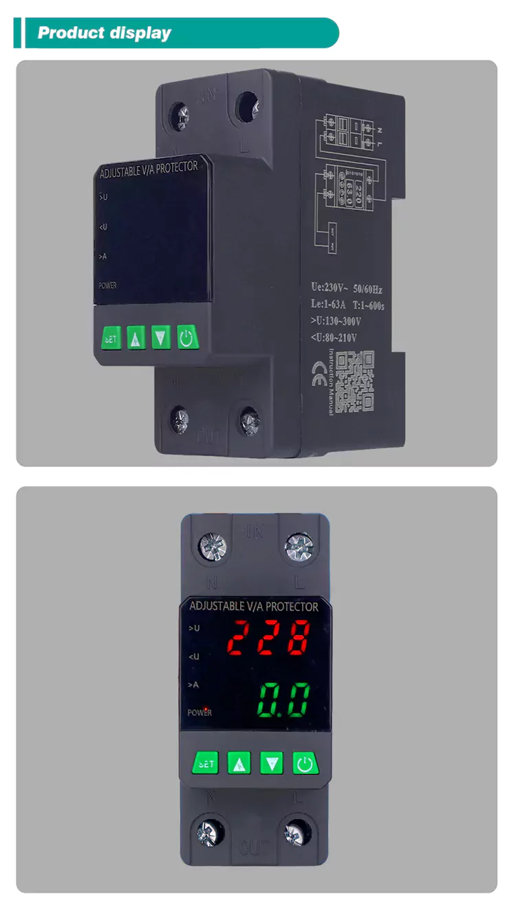 Utstyrt med en digital skjerm og produsert med importerte modulære elektroniske komponenter, har den høy pålitelighet og ytelse. Beskytteren kutter automatisk og raskt av strømforsyningen under unormale spenninger (for eksempel overspenning, undervoltage eller rutenettsvingninger) og gjenoppretter strømforsyningen etter at spenningen går tilbake til normalen.