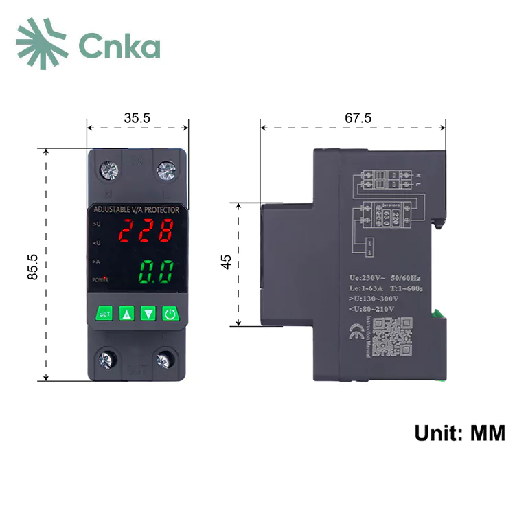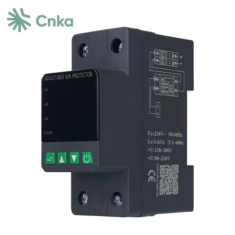 CNKA er en kjent kinesisk leverandør som gir engros av merkets 2-pol-spenningsbeskytterrelé. Disse enhetene er designet spesielt for enfase AC 220V, 50Hz kretser med en nominell strøm på 63A, noe som gjør dem til et ideelt valg for å beskytte boligfordelingsbokser eller ledninger som leverer strøm til enfaseutstyr.